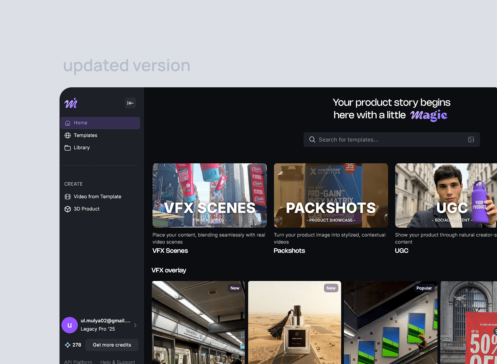 As the app grew, we kept rolling out new "studios" to serve different creative needs. The ones that have made it to production so far are the Video from Template and Image-to-3D studios. My main challenge was to take these complex AI processes and make them feel incredibly simple for the average user.