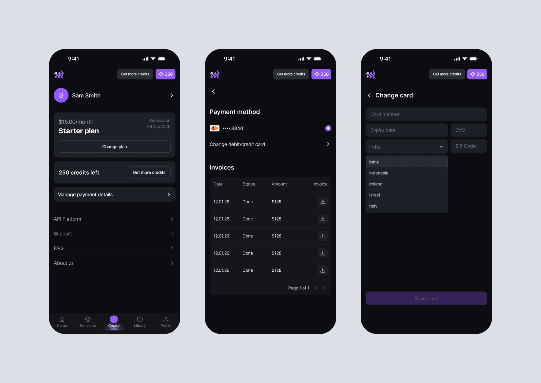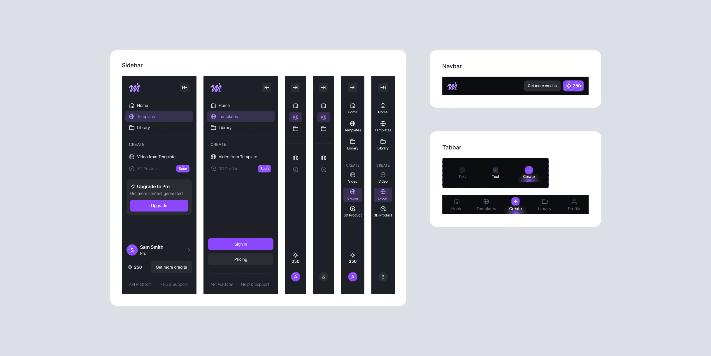 The clear solution was a complete navigation overhaul centered around a sidebar menu. I introduced a dedicated homepage to anchor users after onboarding, which gave the team a high-traffic spot for ads and product updates. This also allowed us to curate popular template categories in one place, making it much easier to promote special collections for holidays and events. By separating the core functions into distinct pages, we gave the app a clear, intuitive structure. User interviews later confirmed that navigation felt significantly more seamless.