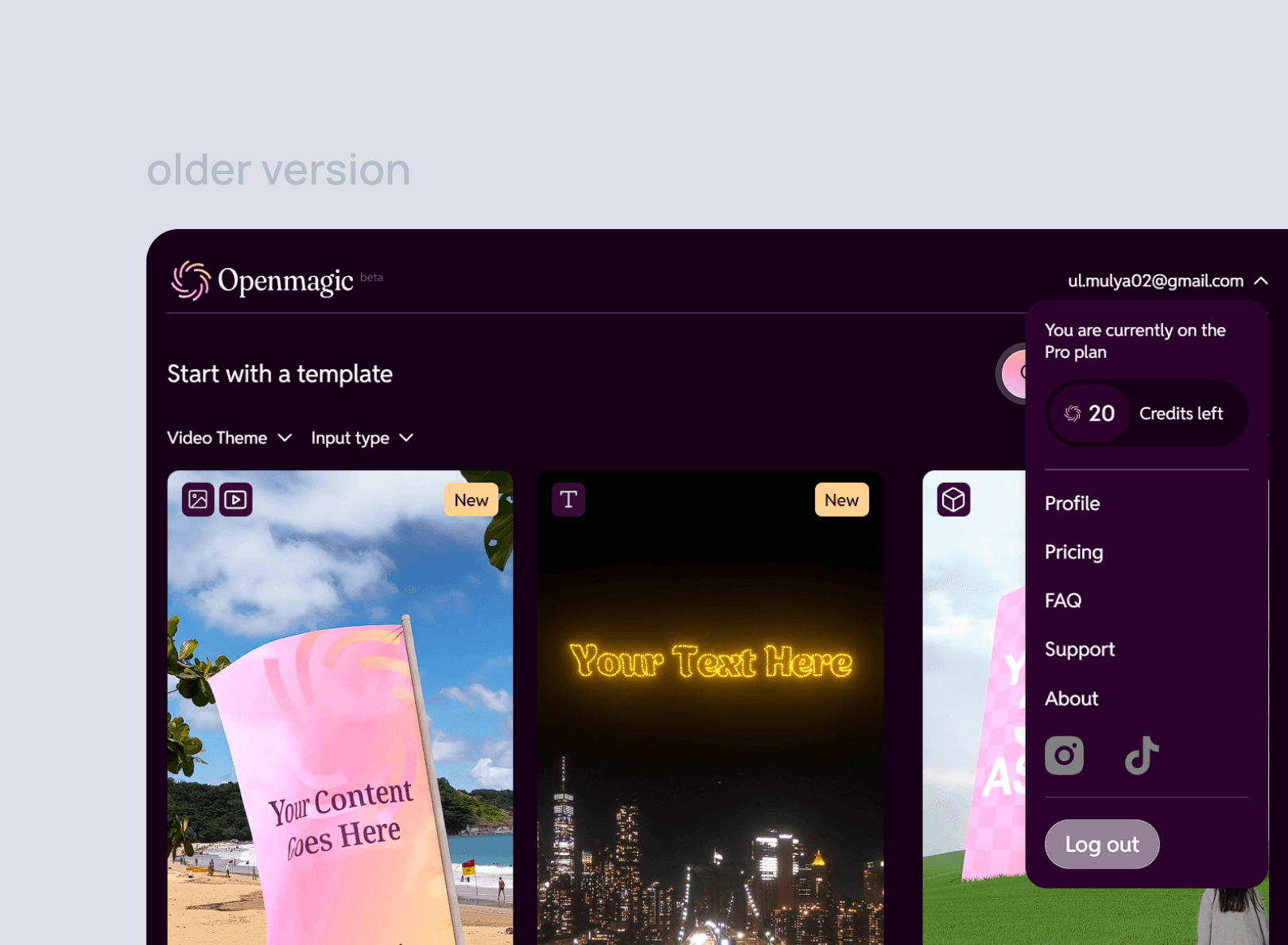 For instance, the original design lacked a solid filtering or tagging system. The homepage was essentially trying to be three things at once: a landing page, a gallery, and an editor. With everything crammed into one screen and pop-ups handling the rest, users were getting lost—especially as we introduced new template types and editor options.